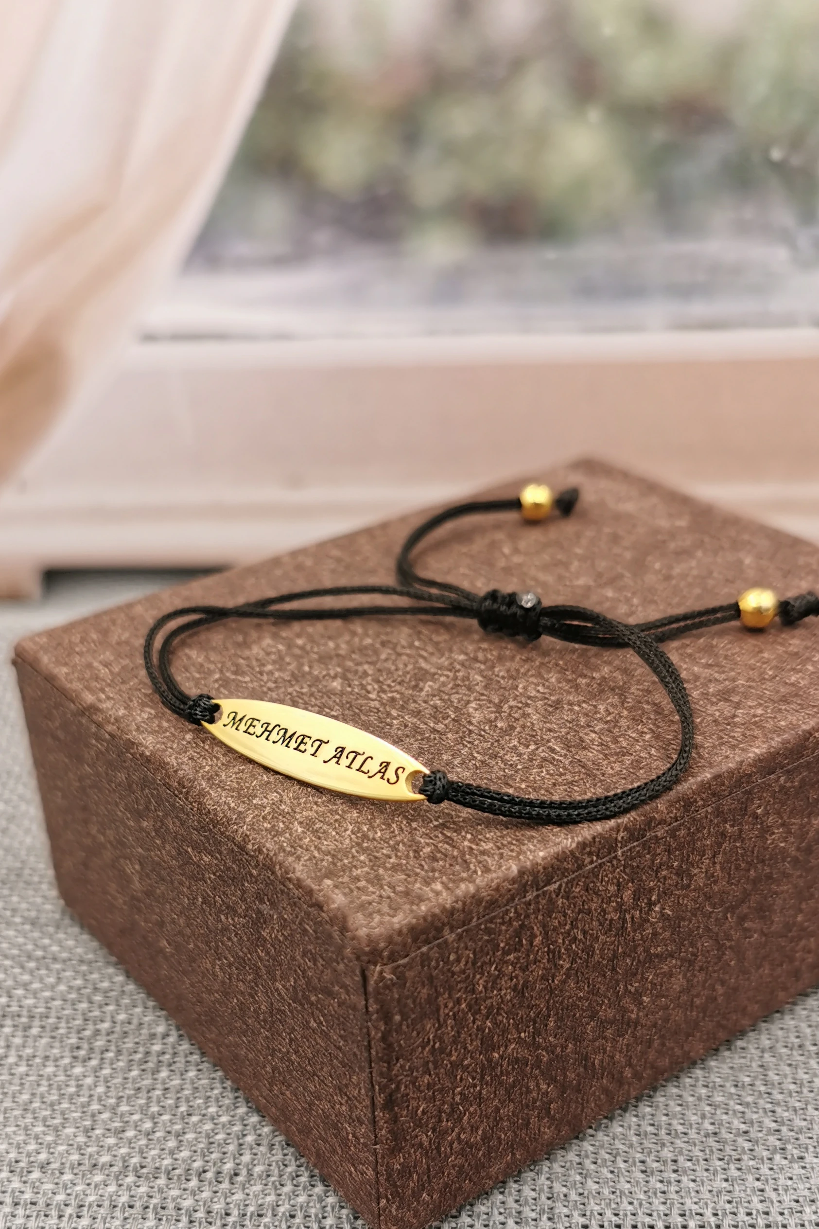 Kişiye Özel İsimli Gümüş Plaka El Örgü İpli Bileklik